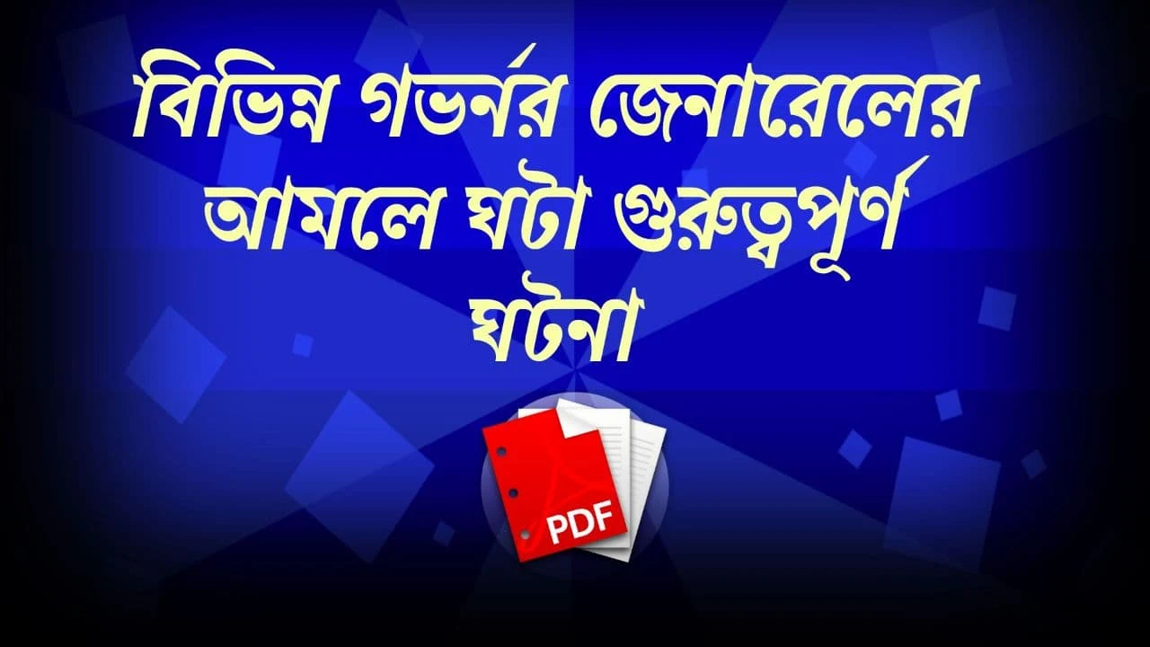 Download বিভিন্ন গভর্নর জেনারেলের আমলে ঘটা গুরুত্বপূর্ণ ঘটনা PDF